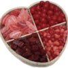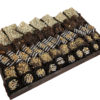 This 3-section wood tray is filled with a delectable assortment of Viennese bark, chocolate cookie pops, and indulgent chocolate truffles. A perfect gift for any chocolate lover!
