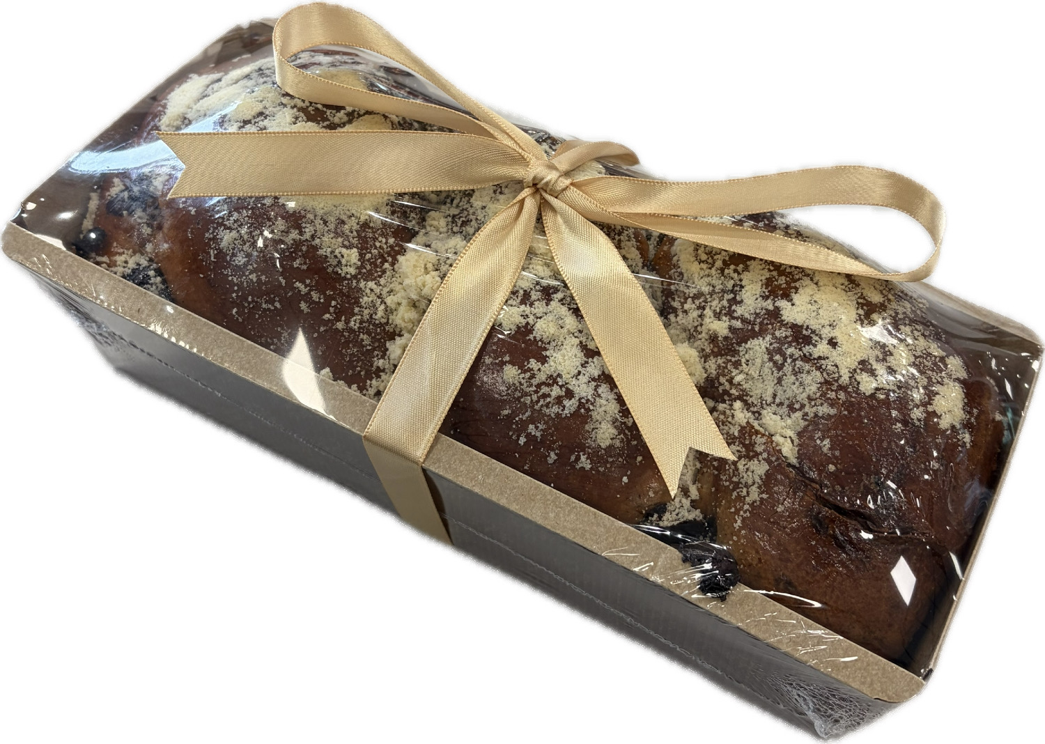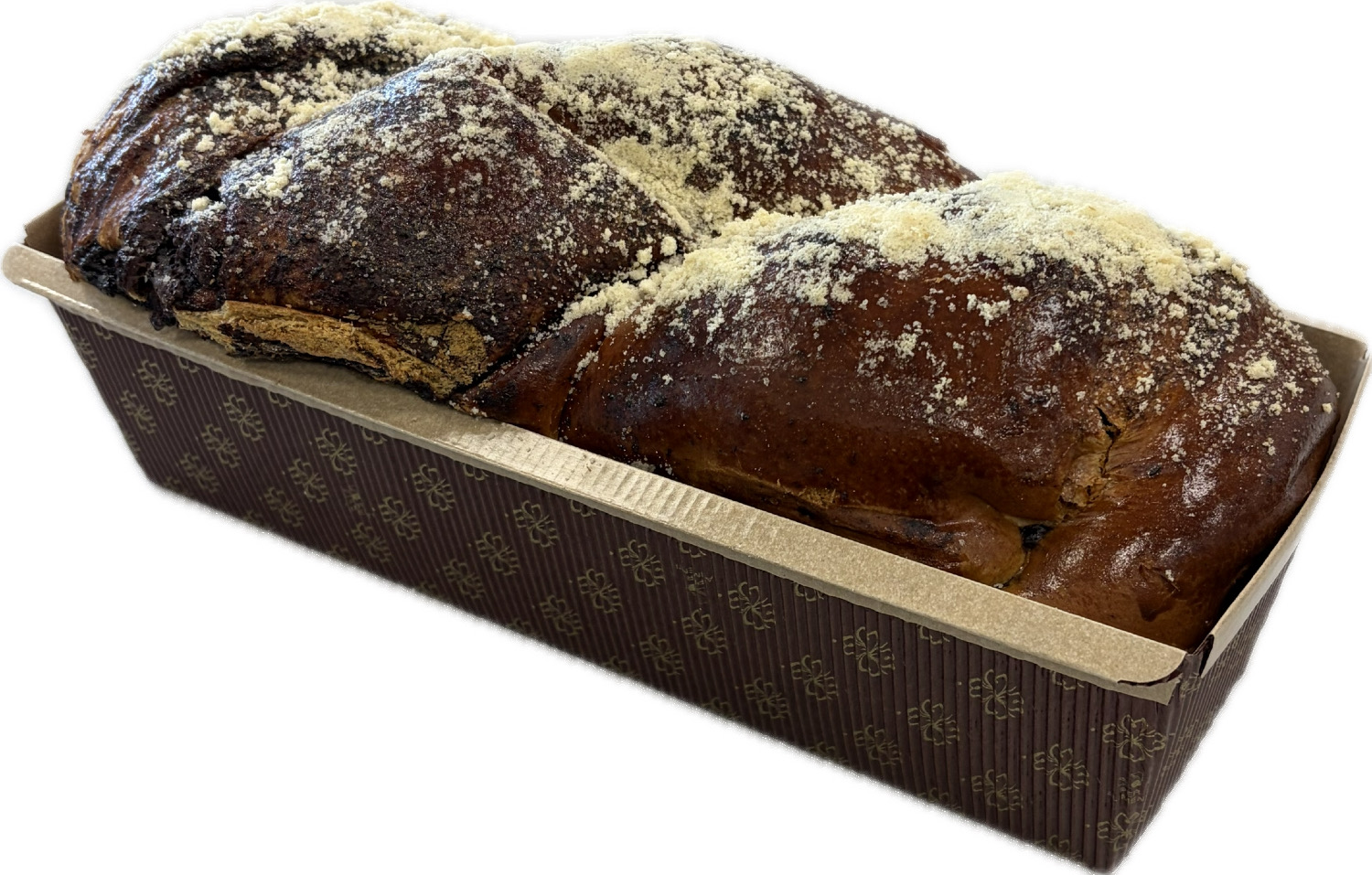 A soft, rich babka with swirls of sweet chocolate filling, baked until golden and moist. Made with quality ingredients and presented in an elegant gift pan, perfect for sharing or gifting.