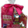 Adorable clear gable box contains: barbeque tortilla chips, snack mix bag, cherry bites, yay taffy, fizzlers, strawberry popping candy, tidbites.